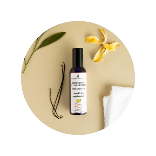 Composition : Huile d’argan bio, huile de ricin, huile essentielle d’ylang-ylang.